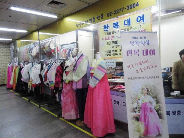 을지로 4가 지하상가 한복집 들려봐 봄철 젊은 남여 한복착용 시내거리 고궁 데이트 유행번져