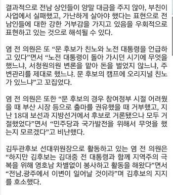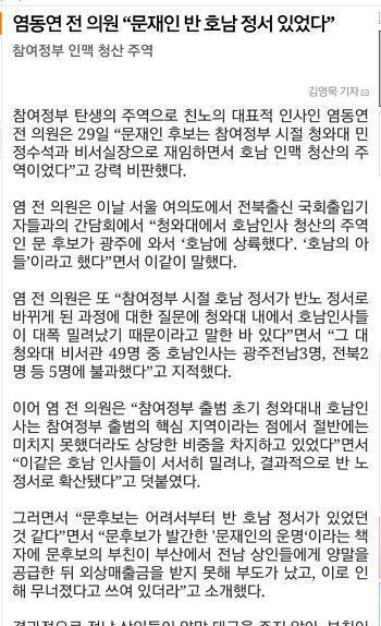 문재인씨가 비서실장으로 재직하면서 호남출신 비서관 수가 광주전남 3명, 전북 2명으로 줄었다 - 참여정부 대선캠프장 염동연