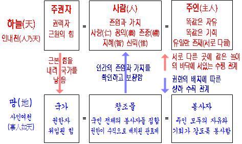 <그림 1> 주권자(권력자=주인=하늘)와 국가(권한자=봉사자=땅)의 관계 |