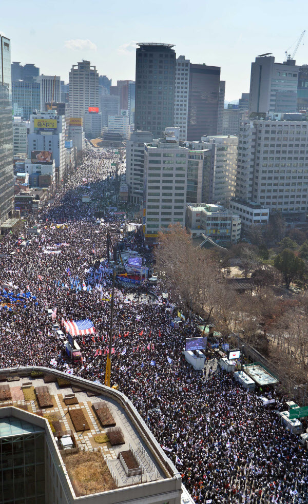 ▲ 태극기 물결이 마치 광복절이나 3.1절을 연상시킨다.