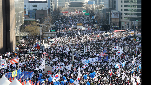 ▲ 플라자호텔 앞의 태극기 집회 인원들. 멀리 남대문까지도 애국 국민들이 가득 찼다.