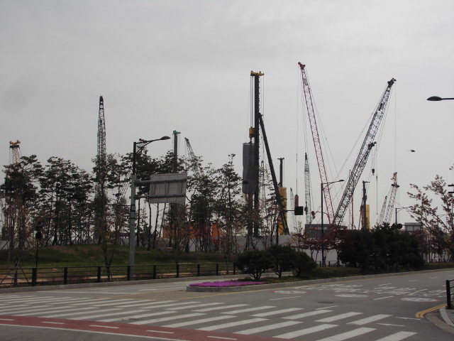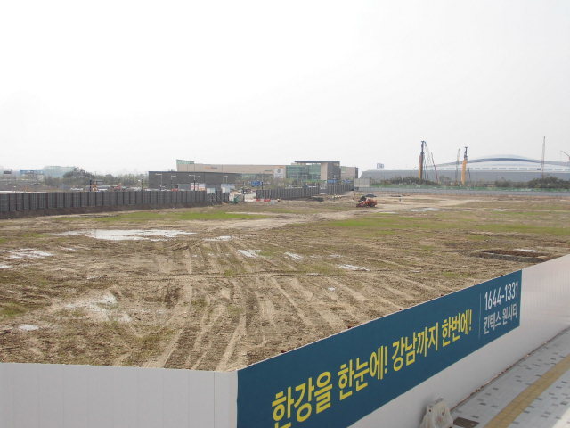 엘지건설의 모델하우스 짖는 준비 대단위 아파트 건설 터닥아 조성을해