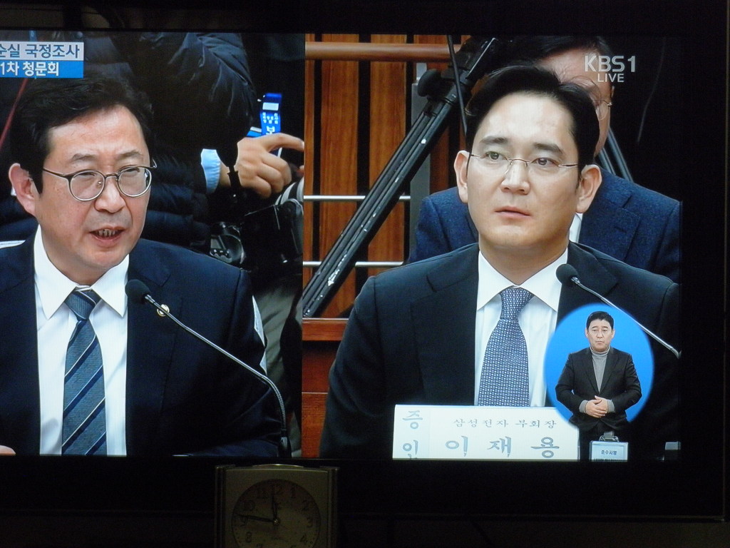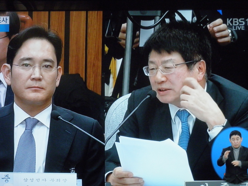 국정조사 의원들 질문에 여려재벌증인들 버벅댇며 행동처신 모호하게 현실을 외면 피하려고만들려문제 전국민들이 발아보는데도 특히 국민들이 관심의 대상으로 시선이 모아지고있는 삼성의 국민연금 부당 합병 뒷배경 실체 국민여론 문제 불법으로 흘터먹은 분노 제일모직과 삼성전자 주주 확보통합의 뒤배경 놓고 불법 거래장사를 뎌려운 박정권과 재벌들 정경유착 고리를 아직도 못끈나