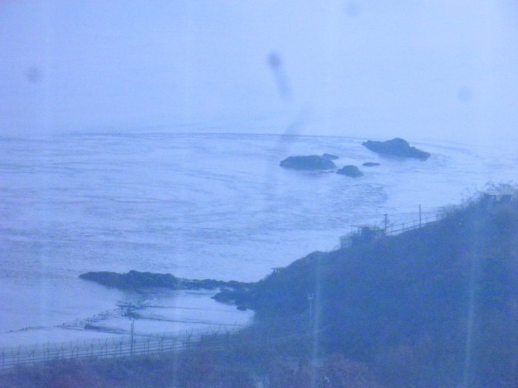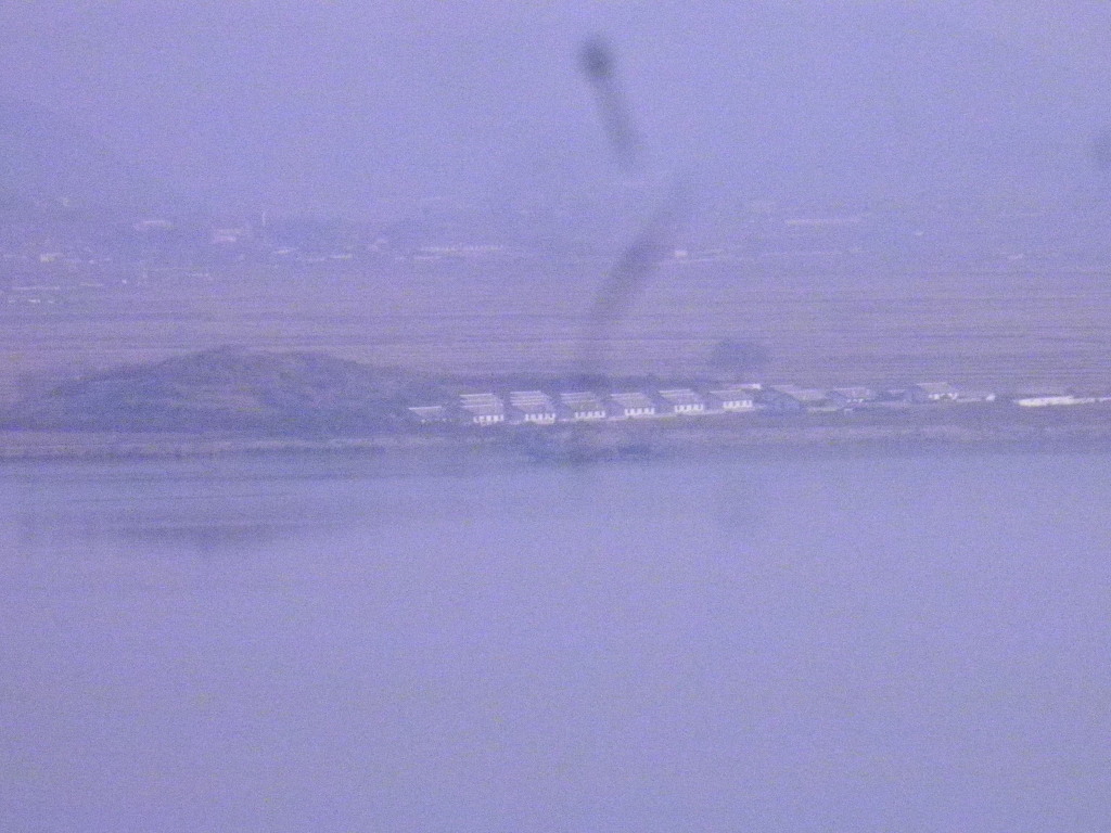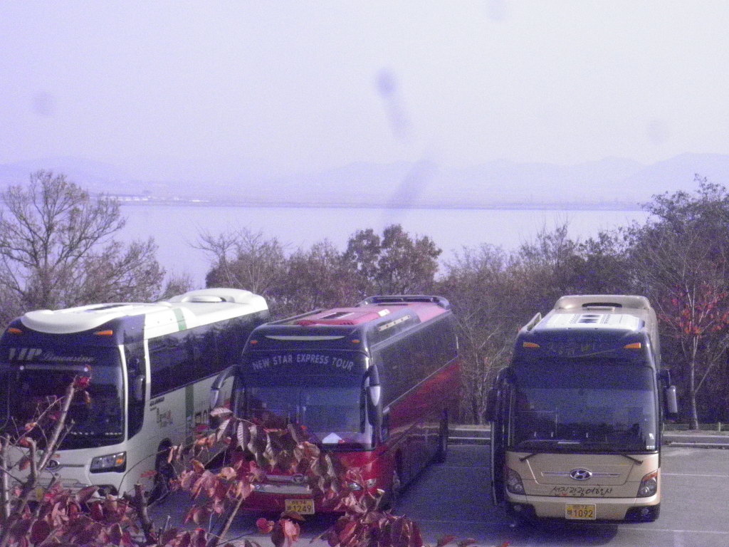 전망대에서 북녘당을 발아본 적진의 북한마을 안개에 까려 흐미해