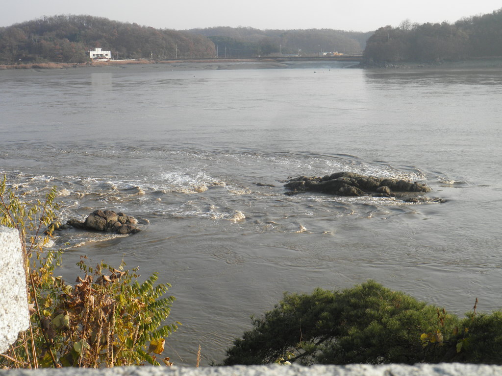 심과 섬사히 믿물 드려오는 장면 광보성 산성 유적지