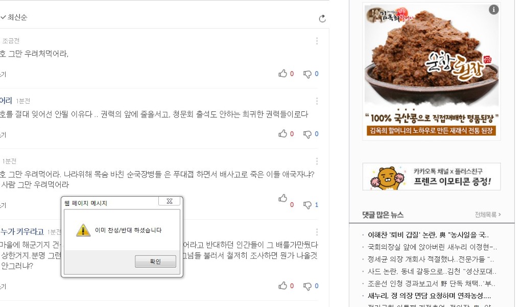 여론조작 하려는 의도인지 아무리 찬반 눌러도 표시되지 않는다.이러니 여론이 개판이고 나라가 개판이지...