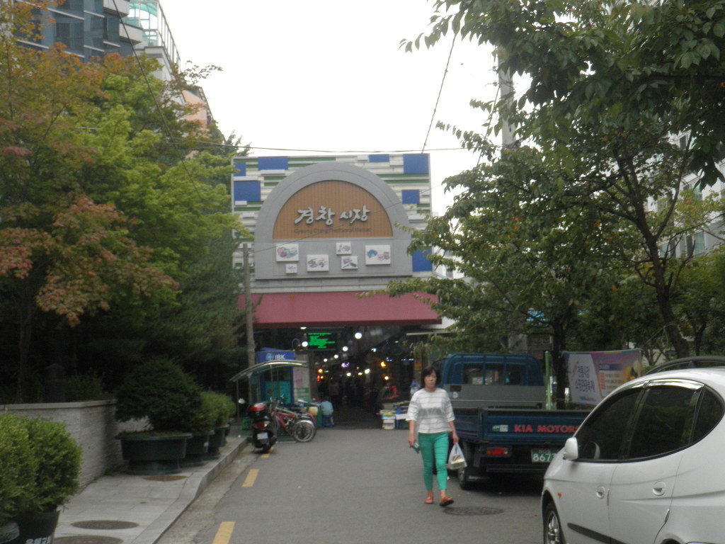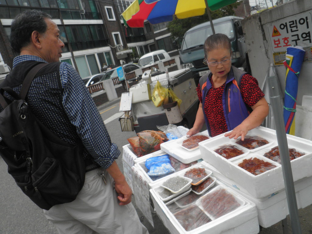 경천시장 진입로에 노상 반찬 손수 만드려