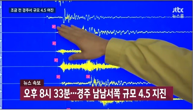 지난 12일 오후 8시32분 5.8지진에 이어 4.5지진 !!!!