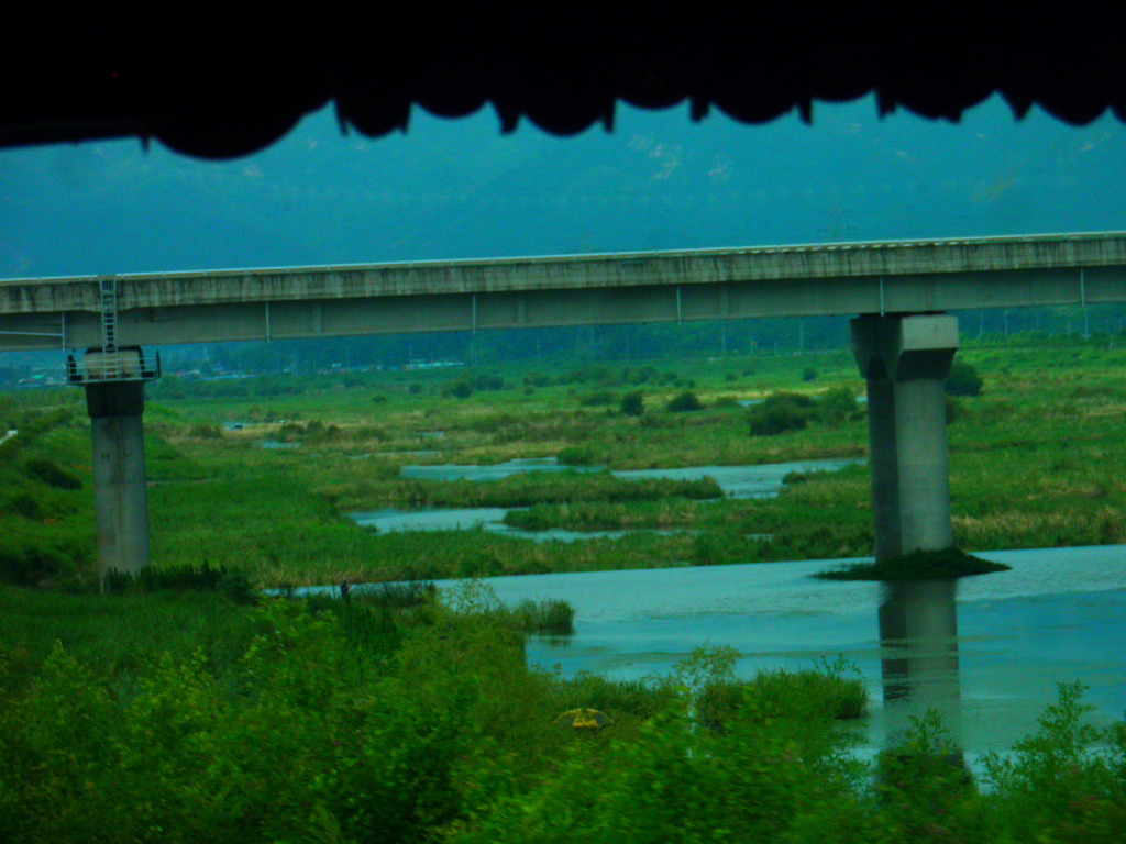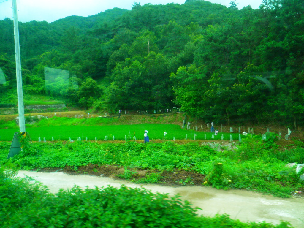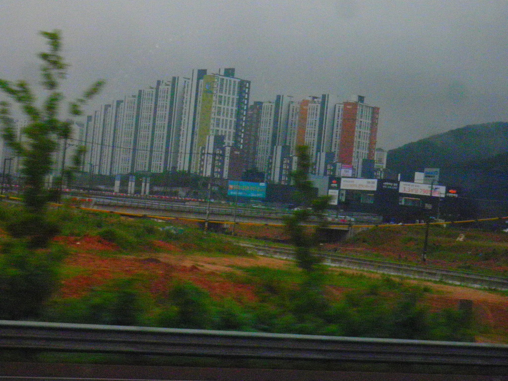 오락가락하는 궂준빗줄기 차창가 넘어 달리는 좌우시경에 잡힌 동탄 동편신도시 건설현장 마무리 아파트 굴림지 전경 클로즘엄돼어 을지4가에서7시 출발 곡성까지 4시간 소요돼어