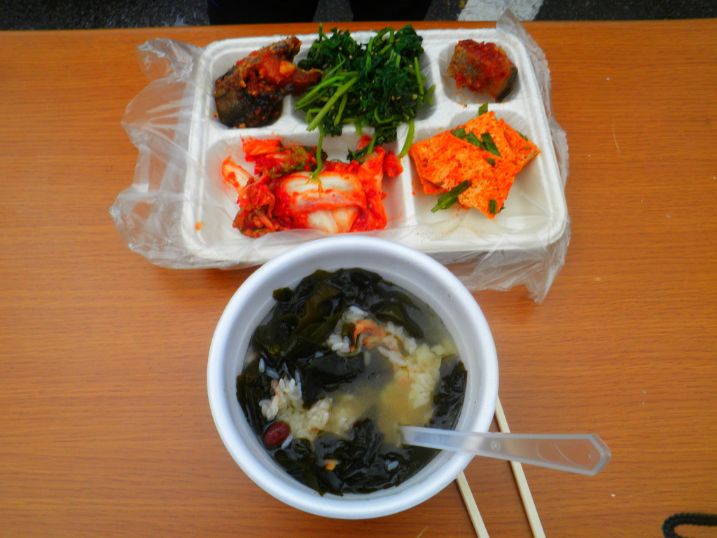 방산시장통 음식점 운여하는 회원이 손수만든 아침식사 미역국 배추곁절이 맛이 일품으로 모두들 맞이있다고들 한마디씩