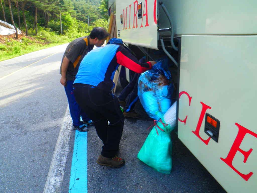 식사후 모든쓰레기들 다시 버스에 실려 서울로 산행인과 동행 반환 야쓰레기고 네고향찿아가라 시골은 네자리가 아니다,