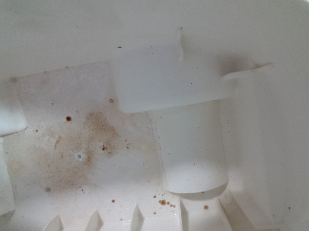 6월26일쯤 우연히 연수기 맨 윗뚜껑을 열어보았더니, 글쎄 소금들어가는 통에 곰팡이와 이물질이 있었어요