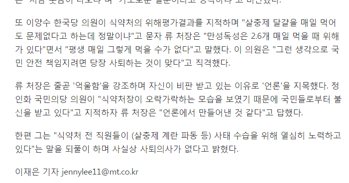 저 식약청장은 안전불감증이에요. 국민 소수가 피해입는건 신경도안쓰는듯싶네요.