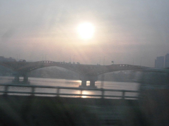 출발6시10분 [성산대교 일출장면 한강시계 연무]도시를 삼키고 잔류돼어 충주휴계소 아침식사 장면