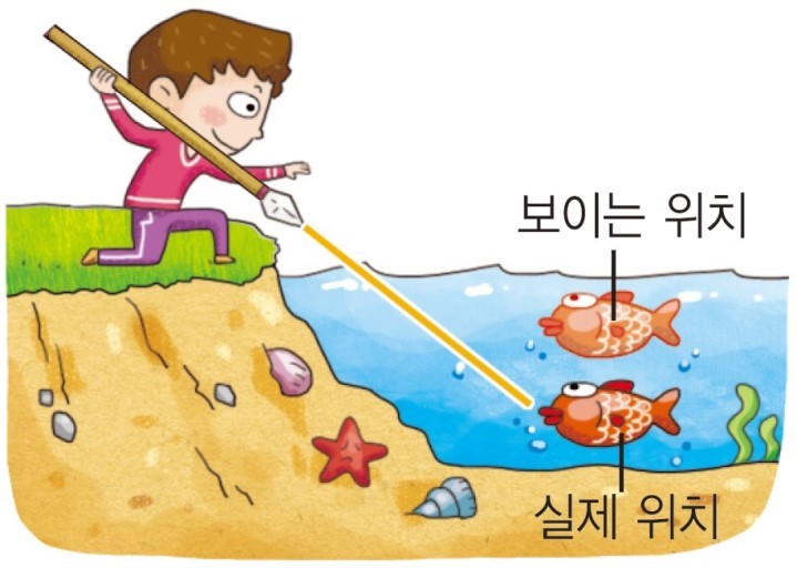 빛은 물로 들어가고 나올 때 굴절합니다. 그렇다면 물총고기가 물 밖의 곤충을 잡을 때 물을 어다로 쏠까요?