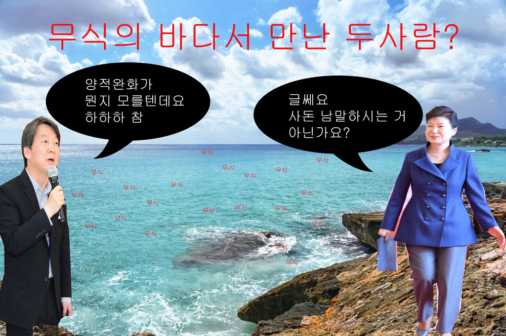 안철수 국민의당 대표가 당선자 워크숍에서 박근혜 대통령에 대해 “양적완화가 뭔지 모르는 것 같은데요”라고 말했다. 그는 또 “경제를 모르는 사람이 청와대에 앉아 있어 가지고. 경제도 모르고 고집만 세고...”라고 말했다고 한다. 박대통령의 반응이 궁금하다.