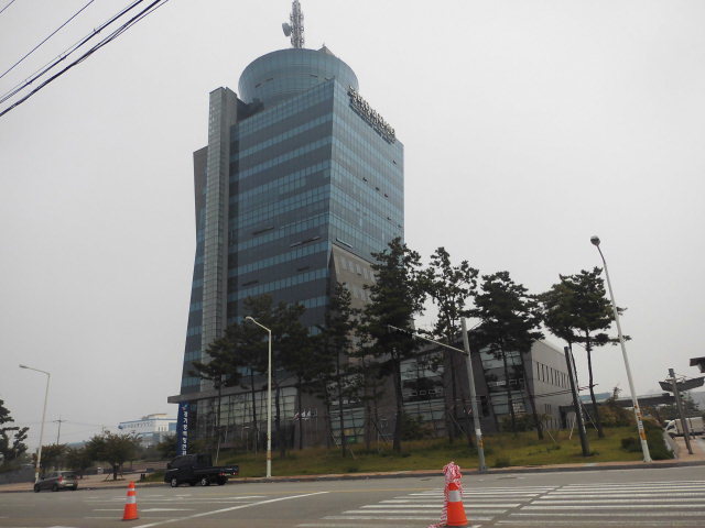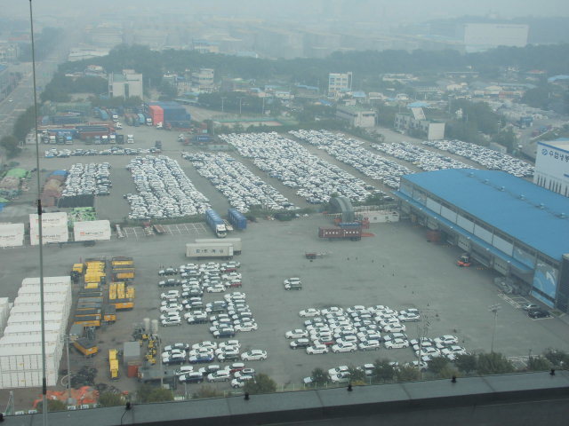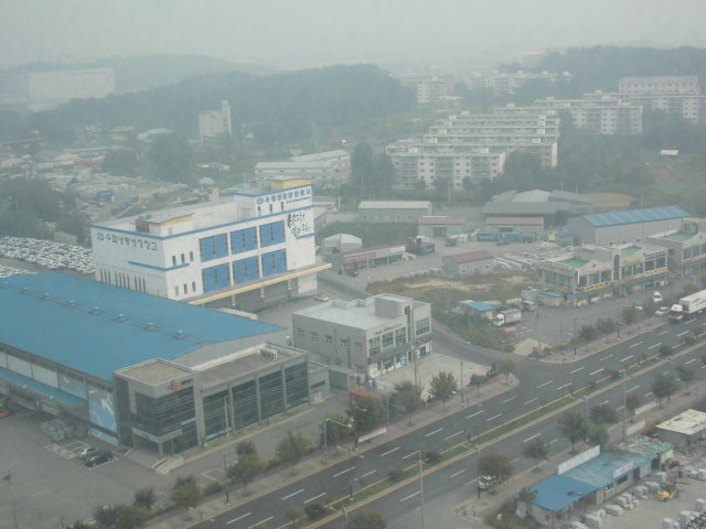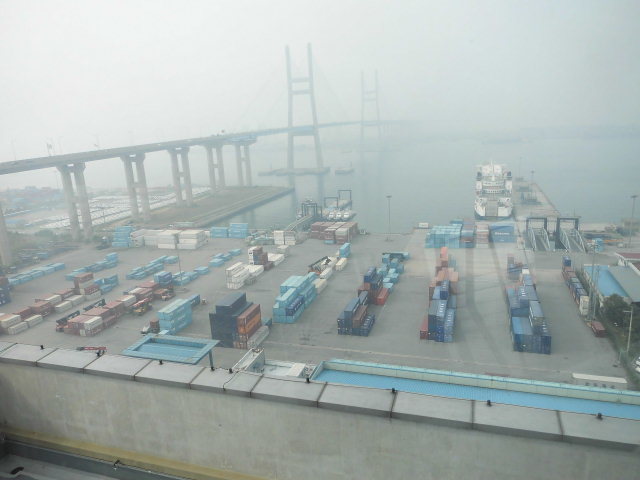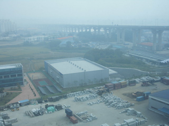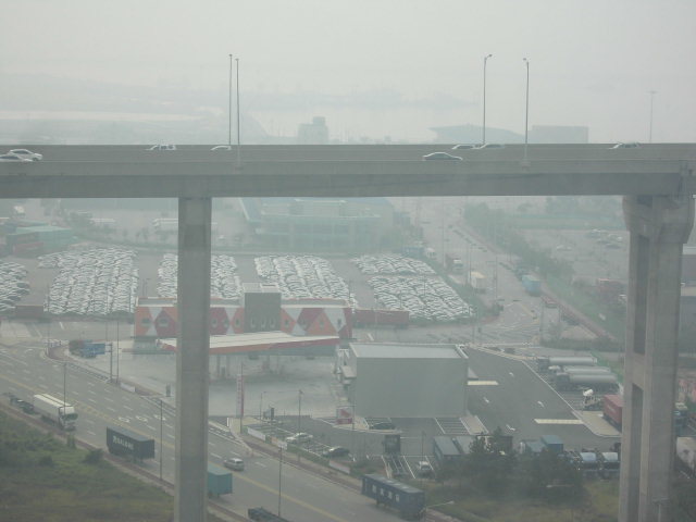 당진가는 서해대교 해무 끼어 자욱해 15층 전망대 타원에 내려본 평택항 풍경