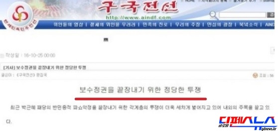 지난 10월 25일에도 북한은 대남선전매체 ‘구국전선’을 통해서 ‘보수정권을 끝장내기 위한 정당한 투쟁’이라는 기사를 내보내며 ‘박근혜 대통령 하야요구 집회’를 격려한 바 있다. 북한이 국내 정치 간섭을 넘어 야당의원과 실시간으로 소통한 사례도 있다.