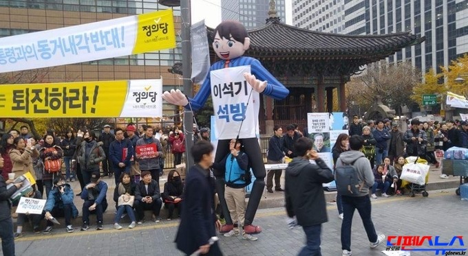 ▲ 19일 집회에 등장한 '이석기 석방' 퍼포먼스 인형. 박근혜 대통령 하야요구 집회에는 항상 '이석기 석방' 구호가 난무하기에 이 집회의 성격이 무엇인진 잘 알 수 있다.