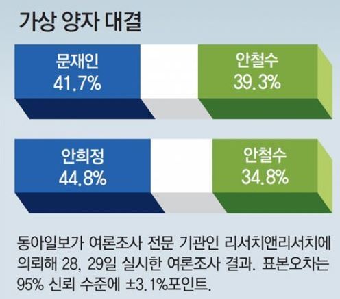 그나마 인지도나 선호도에서(국민의당 지지층에서..) 안철수가 좀 앞서는데 자연스레 경선에서 1위 하는것이고