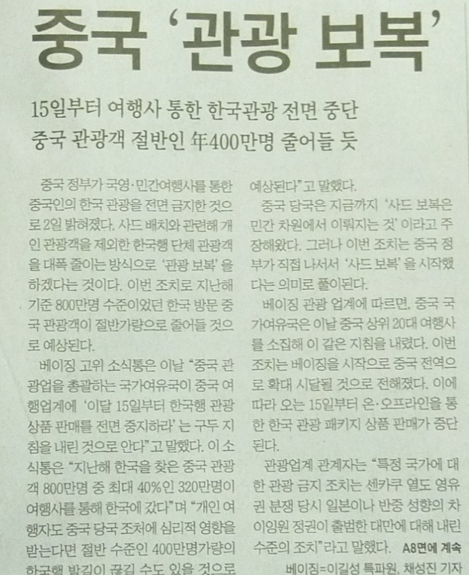 중공의 관광보복