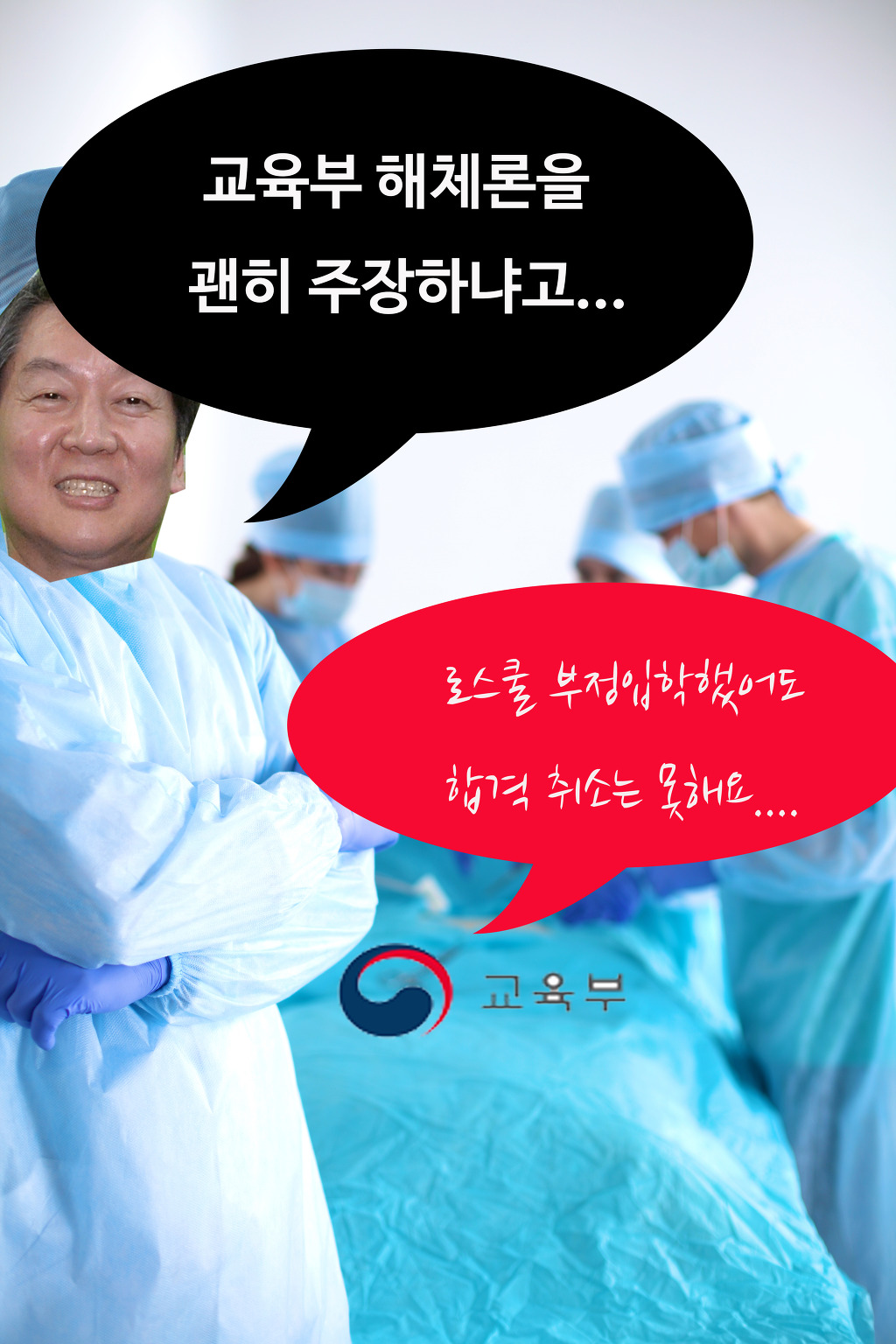 교육부가 로스쿨 입학원서에 부모가 법조계 고위인사라고 표시하는 등의 부정 사실을 적발하고도 입학 취소는 할 수 없다고 밝혀 논란이 되고 있다. 때맞춰 안철수 국민의 당 대표가 ‘교육부 해체론’을 들고 나와 묘한 여운을 남긴다.