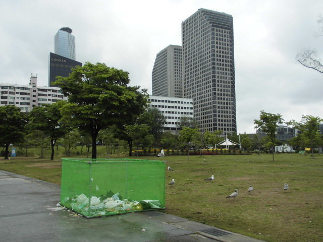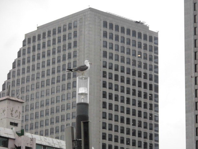 도심속 바다 갈매기 영등포 한강나루에 집단이주해와 살아 육지 비들기와 휴지통 쓰레기하치장 뒤져 먹거리 찿아