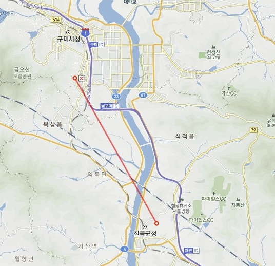 왜관 미군부대(칠곡군 왜관읍 소재)에서 박정희 각하의 생가(구미시 사모동)까지는 12Km가 채 안되는 거리에 있다.