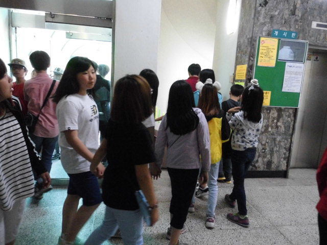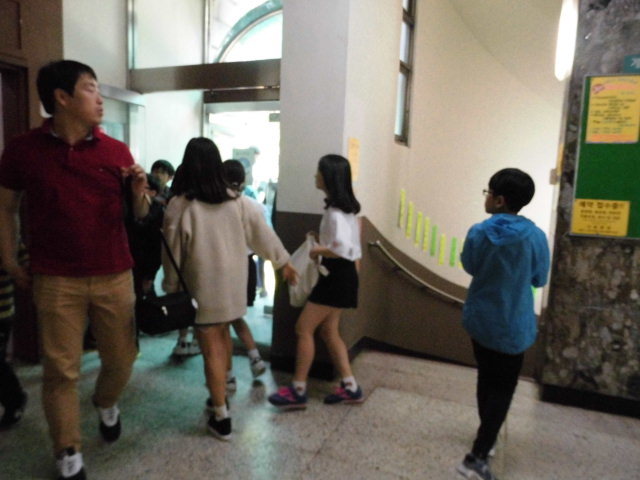 종로3가 안국역사 주변 천도교 회관 지하1층 한식부폐 지방에서 체험 여행온 경상도 양산 삼성중학생 남여 버스3대대로변주차 천도교 건물1층 에서 지하1충 식당찿아 몰려들려 경비 할아버지 안내 질서 안전 신경써