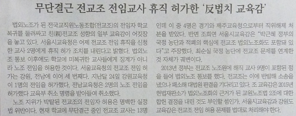 무단결근 전교조 교사 파면하라!