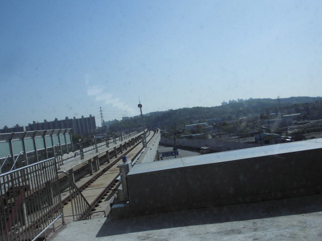 전철 지하에서 육상으로 올라 나오는 철로레일구간 7.8도경사 역사 90프로진척 내부시설 공정보여