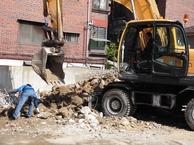 대형크레인으로 장비 포크레인 블로도자 건물 옥상위로 옵겨 벽바닥 해체파손작업 펼쳐 중장비 때론 대형헬기를 동원해 대형굴착기 공수이동시켜 [도시공간에선 건물해체 다아마이트로 폭발 일시에]할수있으니 도시환경진동먼지분진 막대한 경비출혈에 문제많아 장기적인 해체방법도립 24시간 주변인근주민 고통 감수를 해줘야해]