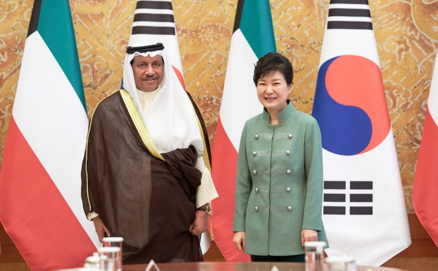 박근혜 대통령은 청와대에서 자베르 알-무바락 알-하마드 알-사바 (Jaber Al-Mubarak Al-Hamad Al-Sabah) 쿠웨이트 총리를 접견하고 양국 협력관계 발전 방향과 인프라·ICT·보건·문화 등 분야에서의 협력방안, 한반도 정세 등에 대해 의견을 교환했습니다.