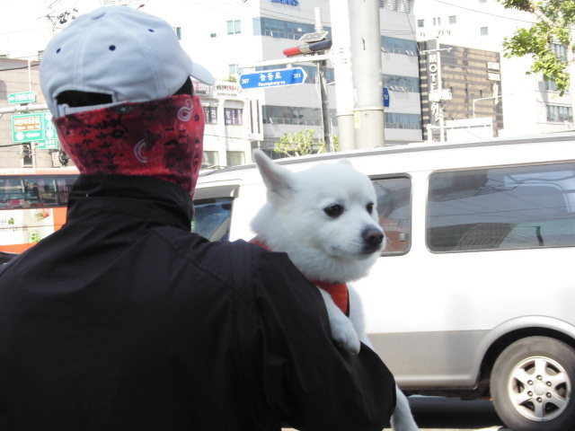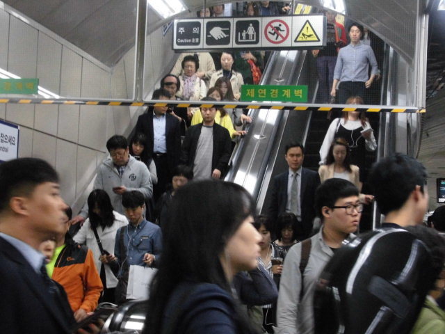 까치산역사 아침출근길 8시 탐조스켓취 힁단보도 신호대기중