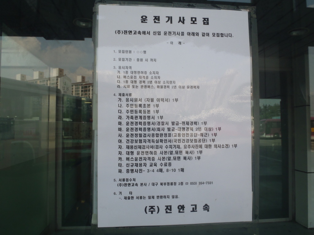 충주버스터미날에 운전기사 구인광고
