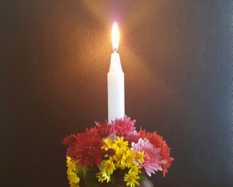 사진설명 : 촌부 나름 간절한 마음으로 밝혀든 촛불과 구름에서 벗어나고 있는 하늘의 해를 담았다.