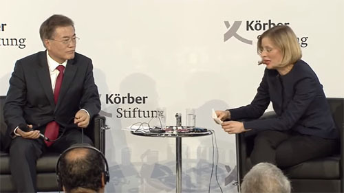 사회자의 질문은 한미관계에 관한 것이었다. 한미관계에 대하여 사회자의 생각을 이야기하며 거듭 한미관계라는 단어를 사용했고, 맨 나중에 다시 한번 정리하며 '한미관계'에 대하여 문재인의 생각을 물었는데 문재인은 엉뚱하게도 중국 시진핑 주석을 언급하며 한중관계에 대하여 길게 답변을 했던 것이다. 이에 놀라 정부 각료 하나가 나아가 문재인에게 귀속말로 무어라고 말하니 그제서야 문재인이 제대로 대답을 했던 것이다. 실로 어처구니 없는 광경아닌가?