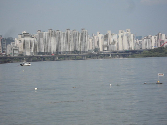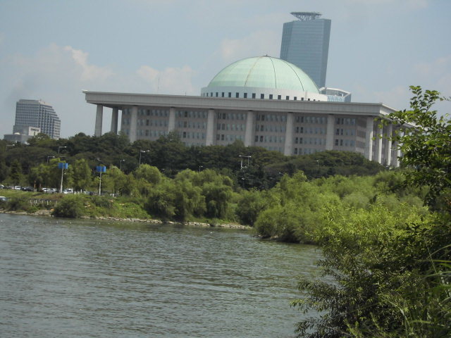 여의도 국회도 무더위에 강물위에 떠있네 의원들 의사당안에 수영하나 왜 안보여