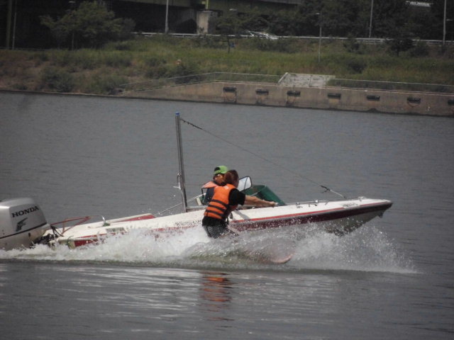 수상스키 강습받는 팔자좋은 여성 누가관람하느이 없어 아쉽네요 ,