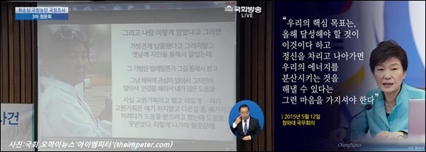 최순실씨도 박근혜씨처럼 긴 문장을 한 번에 말합니다. 그래서 최씨의 말도 ‘알게 된 동기’,’고원기획’.’언론 조작’ 이런 식으로 나눠서 해석해야 합니다.