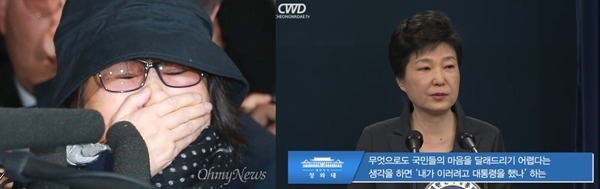 박근혜씨는 대국민담화를 통해 ‘저 스스로를 용서하기 어렵고 서글픈 마음까지 들어 밤잠을 이루기도 힘이 듭니다.’라고 울먹이며’ ‘내가 이러려고 대통령을 했나’ 하는 자괴감이 들 정도로 괴롭기만 합니다.’라고 표현했습니다.