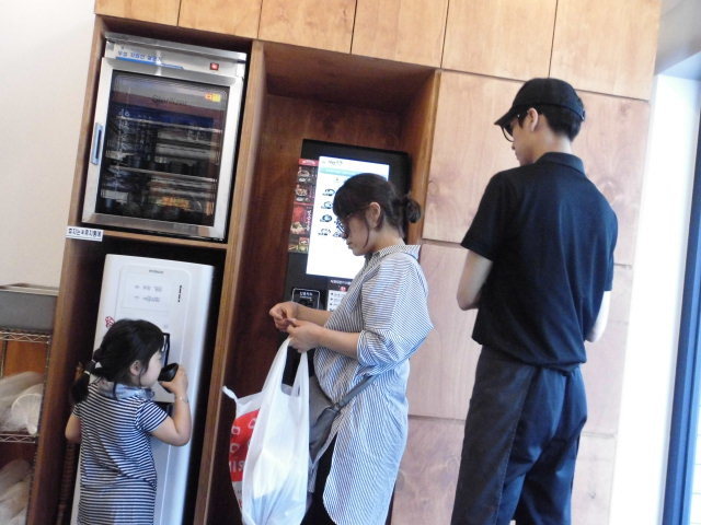 식당안표정 식단메뉴 식권자동발매기 사용 메뉴표 가격 대로 식표발매기 뽑는 주부 알바생이 요령 설명해드려