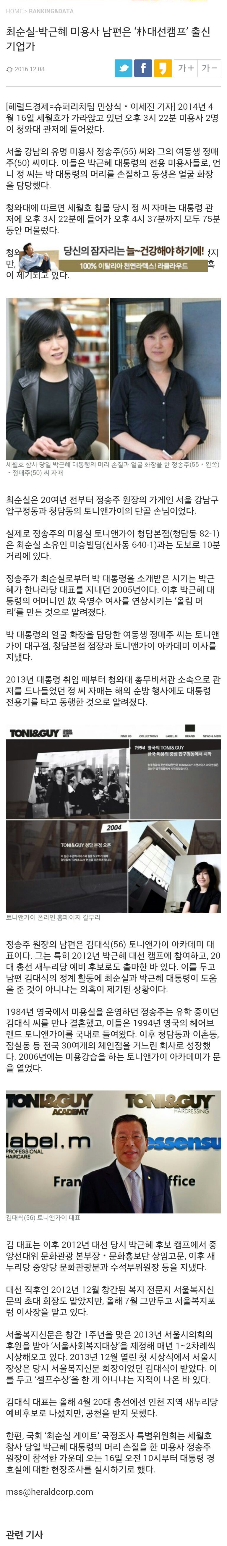 * 토니앤가이 (박근혜 올림머리) 정송주 원장과 동생 정매주원장이 운영