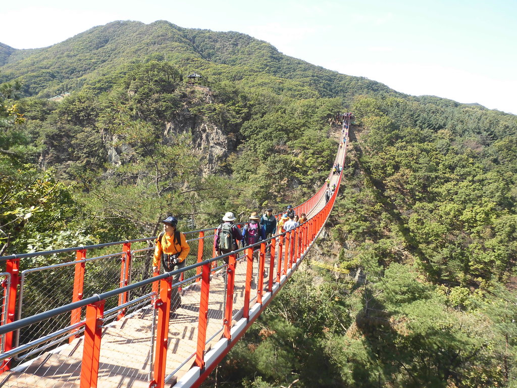 출렁다리 근자에 시설갖춰 소문듣고 몰려드는 산행인