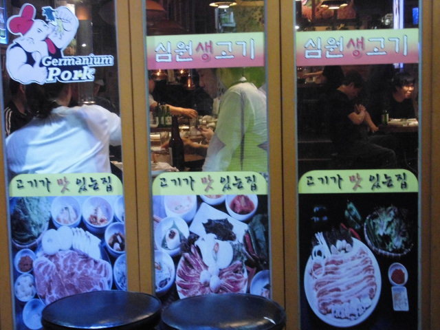 돼지고깃집 식당안 표정 스켓취 지글지글 냄새풍겨