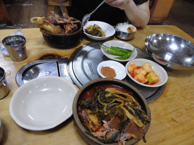 뼈욱거지 해장국 7000원받아 필자와 아내와 함께 식사를 [맛감별 식당주인께 한마디 [ 식수 수돛물받아 병에 넣어 손님에게 물차겁지가 않고 뼈해장국 간이 전혀 들려가지않아 맛은 밋밑하고 싱겁다고 장사잘돼어 무관심에 뱃장으로 장사하면은 않돼지,