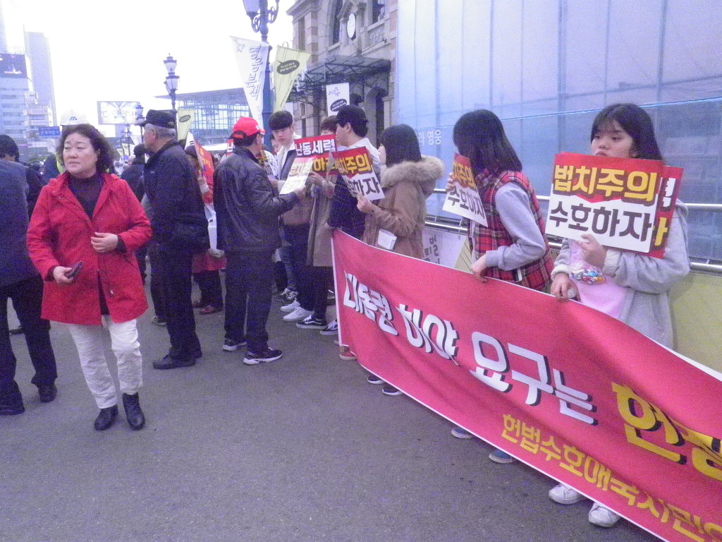 경북 지방도시 보수기성세대 버스로 서울역사 상경 현정권 박근혜 대통령 지짖모임 옹호 연호 벌려 중앙종편 영상뉴스 촬영팀 기자들 영남권 보수기성세대 노인들의 취재 항의 촬영 불허 주최 단체 집결라인선 밖으로 쫓찿내어 촬영 하다 멀쑥해져 ,다른곳으로 이동후퇘하여 보기민망해 국민지역세대간 분열갈들 현실로 목격해 이모든 것역사적인 사실현장