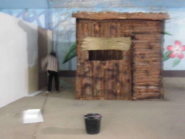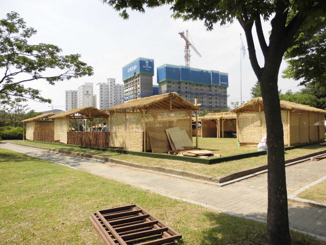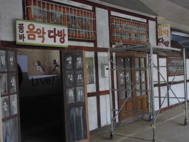 읍내 지역 품바축제 행사 시설부스 광범위 하게 설치중