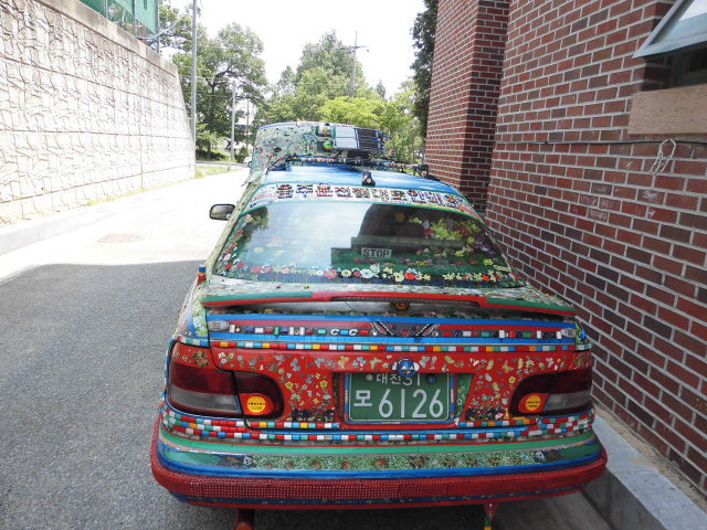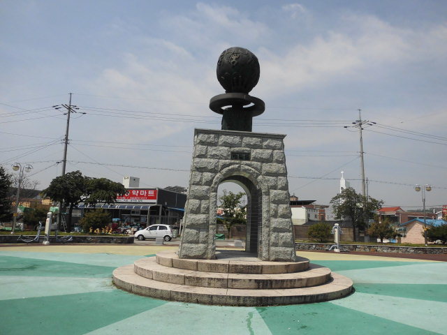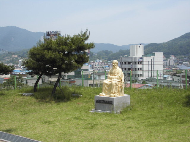 체육관실래 코트장 주변 학교담장 뜰락에 단군님 성전모셔 교정앞엔