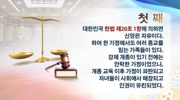 그런데 헌법을 어기면서 강제개종교육을 하는 것은 성경적으로도, 세상법으로 맞지 않는 엄연한